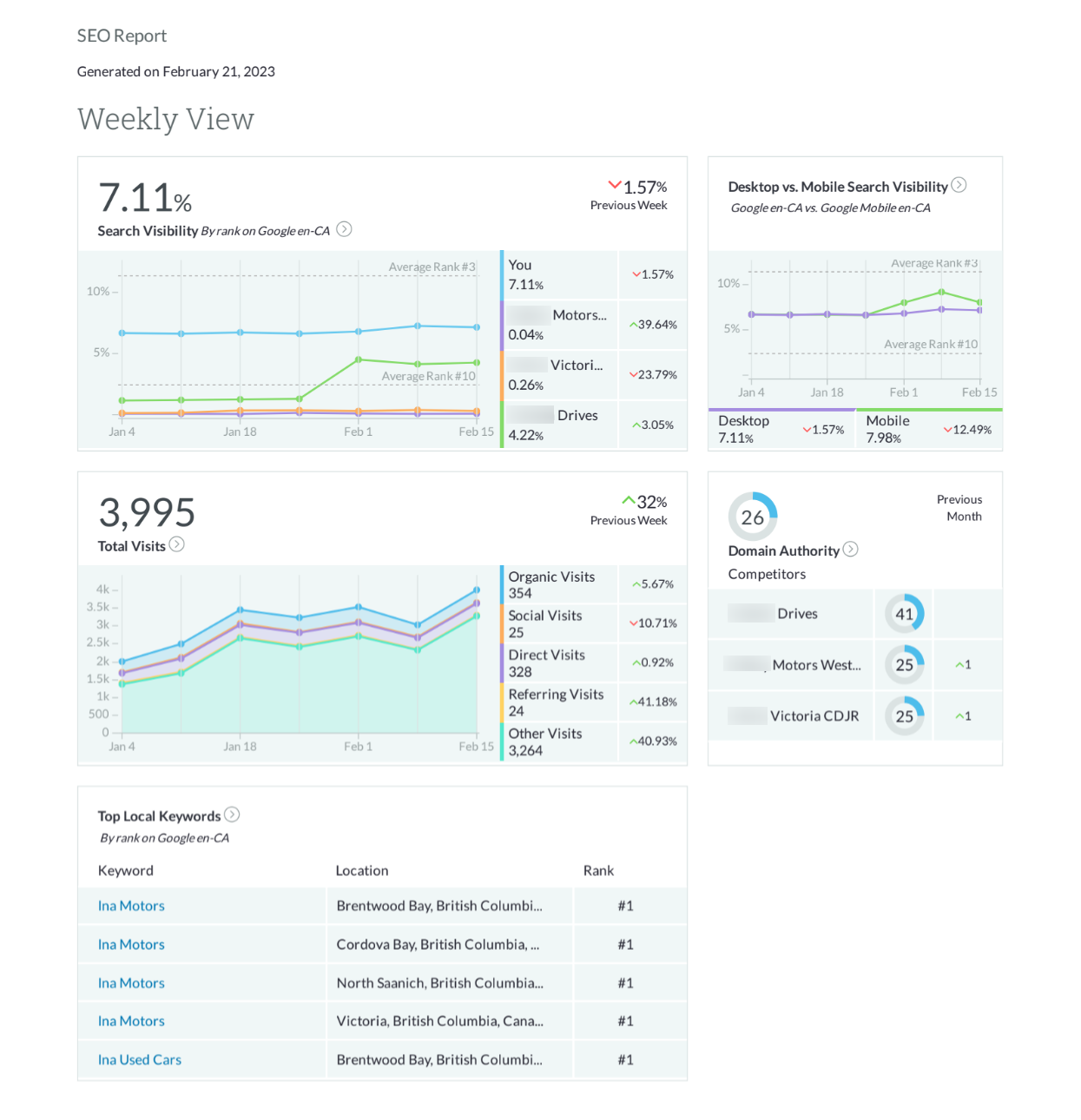 2021: Secured Top 6 rankings out of 35 dealerships in the BC PMA for 3 Chrysler Vancouver Island dealerships in group.